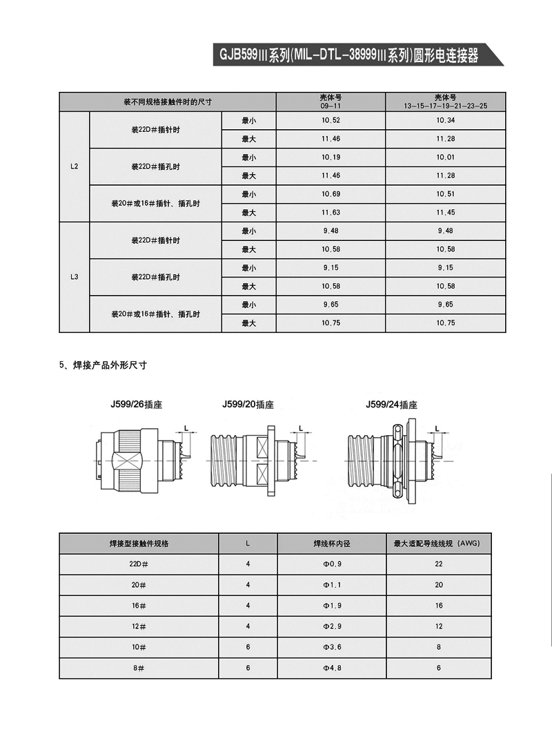 - GJB599I系列圆形航空插头(MIL-DTL-3899)
