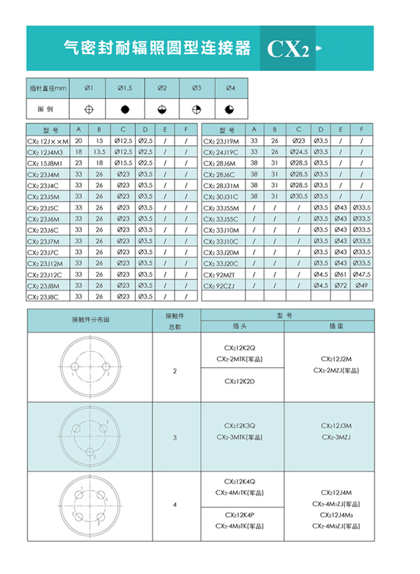 接触件4芯,每芯额定电流50A,插座采用玻璃烧结工艺,气密性能强,以下是产品芯谱和安装尺寸。