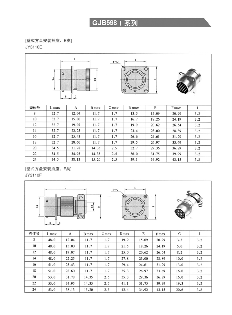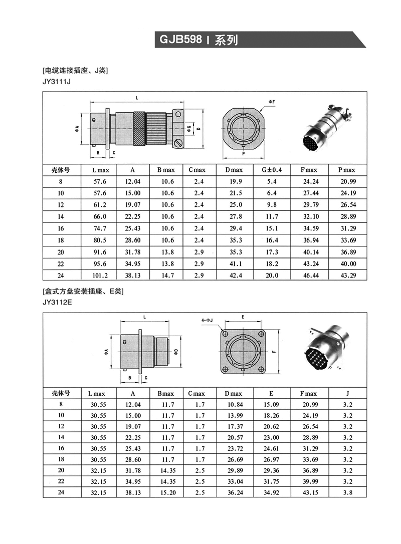 * 广泛应用于各类军用、民用设备中 ——壳体:铝合金 ——镀层:不标记 镀镉橄榄褐色,导电外壳 L 类 化学镀镍,导电外壳 A 类 黑色阳极化,非导电外壳 ——绝缘体:氯丁橡胶 ——封线体和密封圈:硅橡胶材料 ——接触件:铜合金镀金 ——随机振动:频率10~2000Hz 加速度147m/s2 ——冲击:加速度490m/s2 ——机械寿命:500次 环 境 性 能: ——使用温度:-55℃ ~ +125℃ ——相对湿度:40℃时,达95±4% ——耐盐雾:镀镉:500小时;镀镍:48小时 ——密封性: 封线体密封 泄露率小于4.6×102 Pa cm3/s 烧结密封 泄露率小于0.1Pa cm3/s http://www.txzydz.com/Product/yuanxinghangkongchatouhangkongjiechajian/
